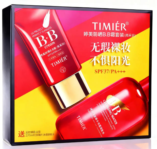适量BB霜轻点于指尖,在脸上推开要从易脱妆的额头开始,三点等距点开,再使用粉底刷